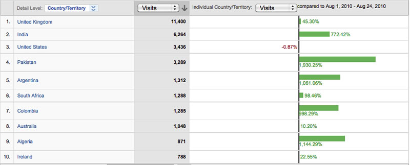 Map showing August DDB visitor distribution Top 10 Countries by Visits: 1. UK – 11,386 Top 10 Pages Visited: 1. Home Page Comparatives: